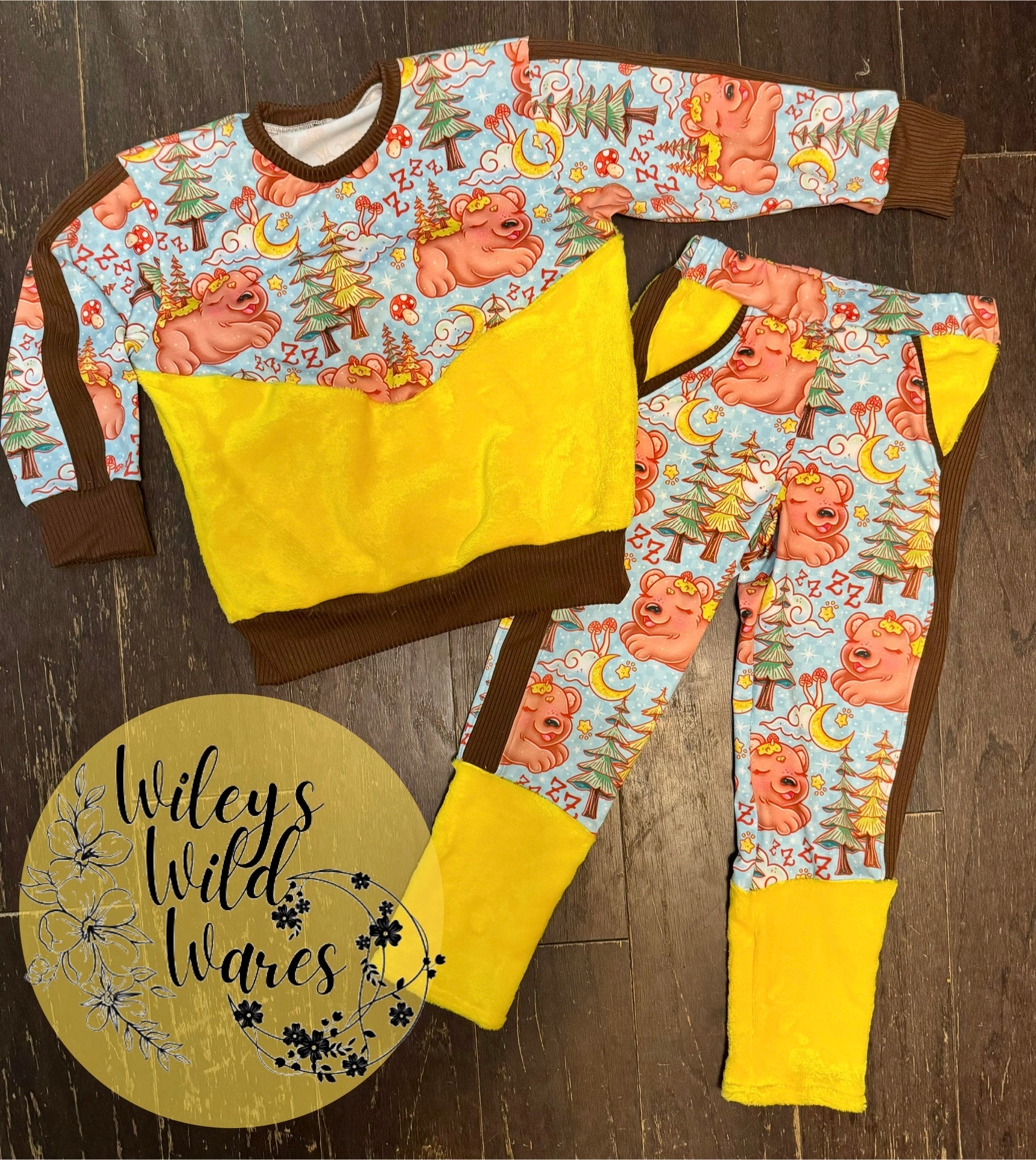 This awesome color blocked pullover & jogger set is perfect for lounging around in, getting , active, or just looking cute in your favorite prints! It’s has a slouchy fit and is perfect for getting comfy!